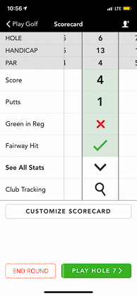 Like most GPS apps, GolfLogix has a score and stat tracking feature. Where they improve on this feature is by allowing you to customize what stats you keep. If you only want your score, you can do that. You can also take it to the max with putt, greens in reg, fairways, driving distance, fairway bunkers, greenside bunkers, pitches, chips, penalties, and missed putts. Whether you keep a simple score or the full load of stats, inputting your data is quick and easy.