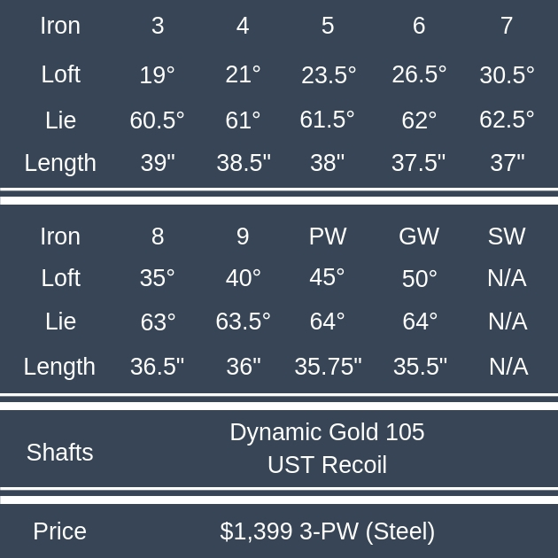 The 2019 TaylorMade P790 irons are the sequel to one of the best performing irons of the last few years. Excellent ball speed. Low spin.