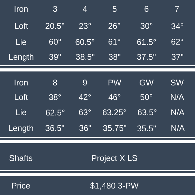 The Callaway Apex MB Irons are beautiful blades that are not afraid to punish mishits. Square toe. Excellent feel.