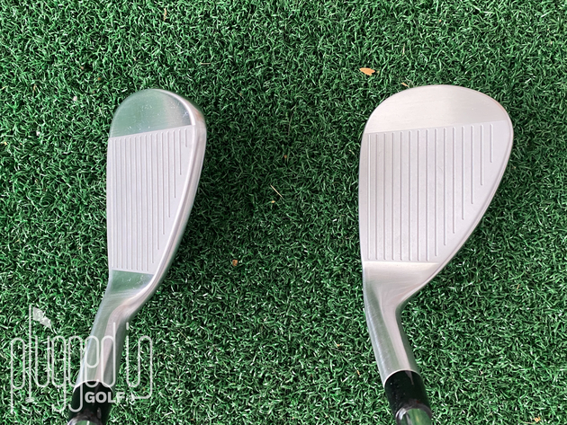 Due to the progressive set design, you can’t describe the address look of the 0211 irons in one go. In the long irons (first address photo, 4I left, 6I right), these clubs have a longer blade length, more offset, and a square toe. As you get to the wedges (above, PW left, LW right), the face and toe become more round and the offset shrinks to almost nothing. Additionally, the leading edge of the wedges is round where the mid and long irons are square.