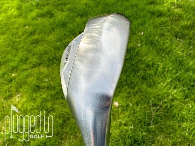 Moving to the sole, I have to give kudos to whoever wrote this: “We should have called this wedge the foot massage for how much relief you get in the heel and toe.” That’s very funny. But in all seriousness, this wedge has a massive sole that’s largely ground down around the edges to improve versatility. The “playable” portion has high bounce, so it’s very good at resisting digging in turf or in sand. That heel and toe relief make it play thinner, so you can open the face a bit or hit shots off tight lies.