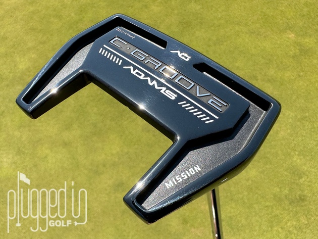 Both putters have soles that are entirely black and silver. The Mission is more visually intriguing thanks to the way it’s hollowed out. Both have prominent “C-Groove” and “Adams” branding with the model names tucked to the side in a smaller font.