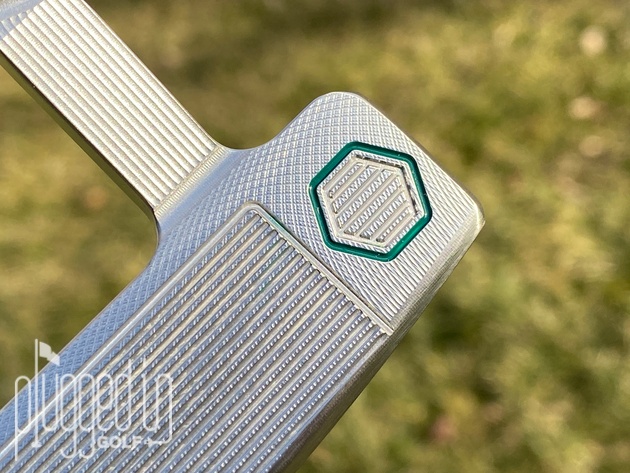 Though it doesn’t feature Bettinardi’s trademark honeycomb milling, the face of the Studio Stock 35 is still a show stopper. The extremely fine mill marks on the Roll Control face are mesmerizing. A lined, open hex is all the decoration this face needs.