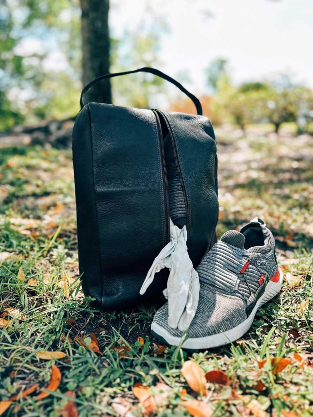 Treat your favorite golfer to a stylish way to tote their footwear. The Tica Shoe Bag is made of top grain leather that will not only last for years, it will develop character as it ages. It also features an interior zipper pocket for stashing your valuables. Available in Honey, Espresso, and Black, you can find one to fit their style.