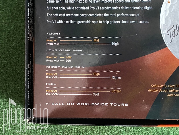 Let’s start by comparing the Pro V1 to the Pro V1x. There is a common misunderstanding that the Pro V1 is the higher spinning ball, but this is not the case. Titleist promotes the Pro V1 as having “High” short game spin with the Pro V1x being “Higher.”