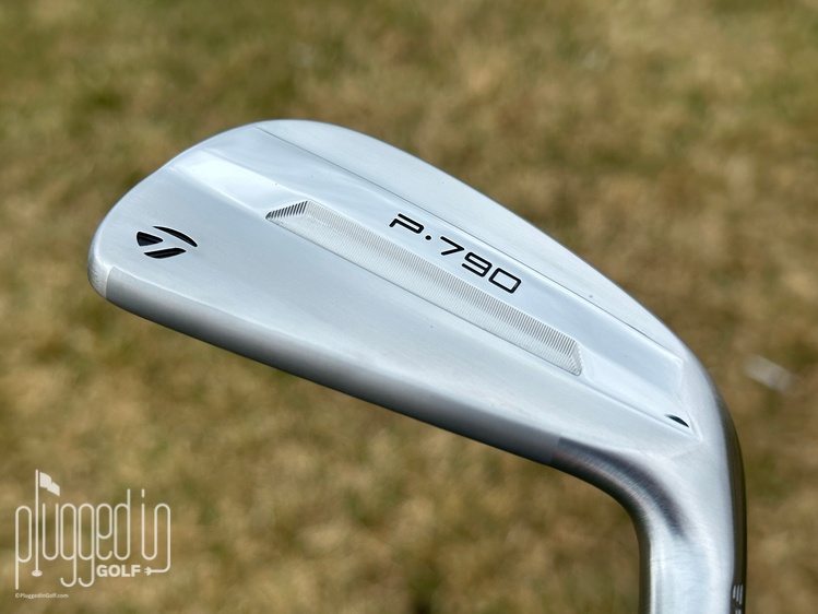 A major part of the P790’s success is its clean look, and that’s only been enhanced in the 2025 TaylorMade P790 irons. In the bag, the design mimics the P770 irons [review HERE] with “P790” engraved across a mirrored backbar. The Tour Satin Scratch finish looks premium as well as providing more durability. Only the TaylorMade “T” logo on the edge of the toe disrupts machined texture across the rest of the back of the club. The 2025 TaylorMade P790 irons will definitely turn heads on the course.