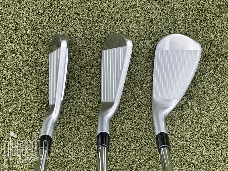 At address, the new P790 has a thinner top line than the previous version, pushing them even closer to TaylorMade’s other P-Series irons. This set is average in heel-to-toe length with modest, progressive offset. As you can see above, the leading edge is almost perfectly straight in the long irons, transitioning into something slightly more rounded in the scoring irons.