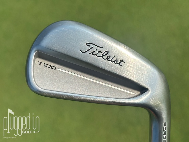 In the bag, your eye is immediately drawn to the “Titleist” logo. “T100” branding is tucked into a cavity that’s even more subdued than its predecessor’s. This is topped with a matte finish that’s shared by the entire 2025 Titleist T-Series iron family.