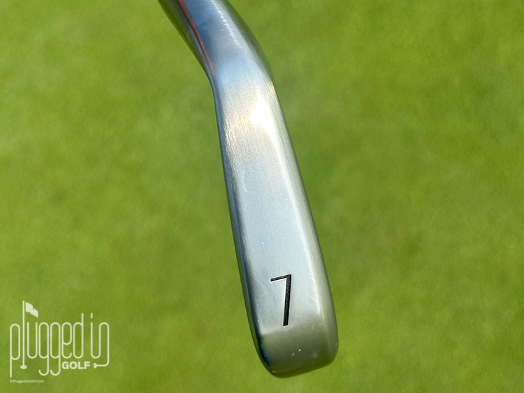 Above, you can see the 2025 Titleist T100 (right) next to the T150 (left, review HERE). Per Titleist, the T150 has a “slightly larger head size” than the T100. My fitter told me that the blade is 0.5mm longer, and both irons have the same offset specs. The top line of the T150 is thicker, but this is one of those situations where the T150 suffers because of the comparison. On its own, the T150 is gorgeous and thin, but it’s always compared to arguably the best looking iron in golf.