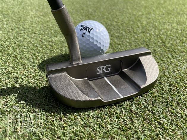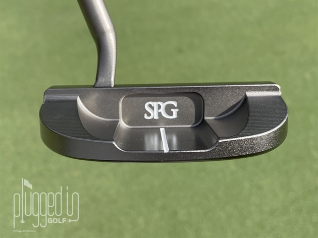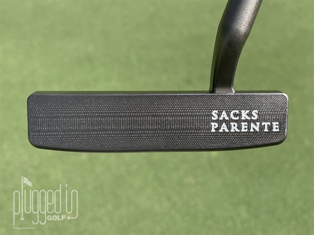 Overall, the putter has a clean, high-end look. The sole has twin cutouts with intriguing geometric patterns on the inserts. Fine milling covers the entire face, interrupted only by “SACKS PARENTE” in bright white. That same white color also appears as “SPG” in the cavity behind the face and the aim line down the center of the trailing flange.