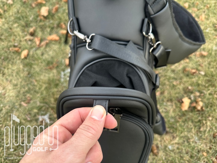 The back of the bag features a magnetic, felt-lined pocket that’s ideal for a rangefinder. The magnet is very strong, which is great for keeping your stuff secure, but it does make me wish the pull tab was a little bigger. This sits above a large, zippered ball pocket that holds two dozen balls easily.