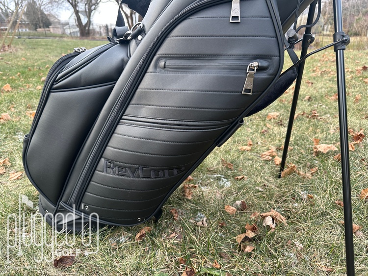 Like all of the RevCore golf bags that we’ve reviewed, the RevCore LT Lightweight stand bag has a clean, timeless look. The branding is limited to moderately sized “RevCore” logos on the bag’s sides and small engravings on the zippers. Both sides feature diagonal stitching across the large pockets to give the bag some visual interest.