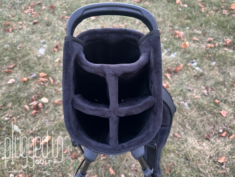 Another positive for the RevCore LT is the top. It’s a 5-way top, and every section has a full-length divider. While it will be a little tight with fourteen midsized or oversized grips, it’s certainly capable of holding a “full” set. With eleven or twelve clubs, everything slides in and out easily.