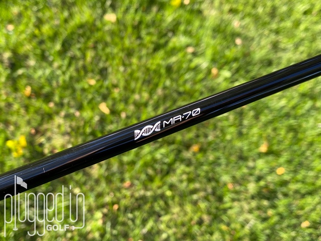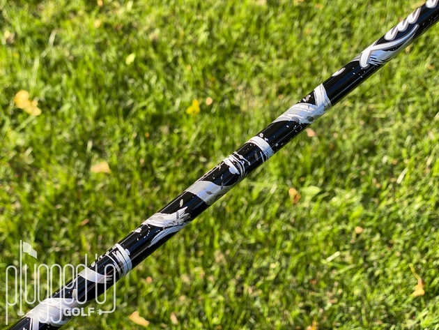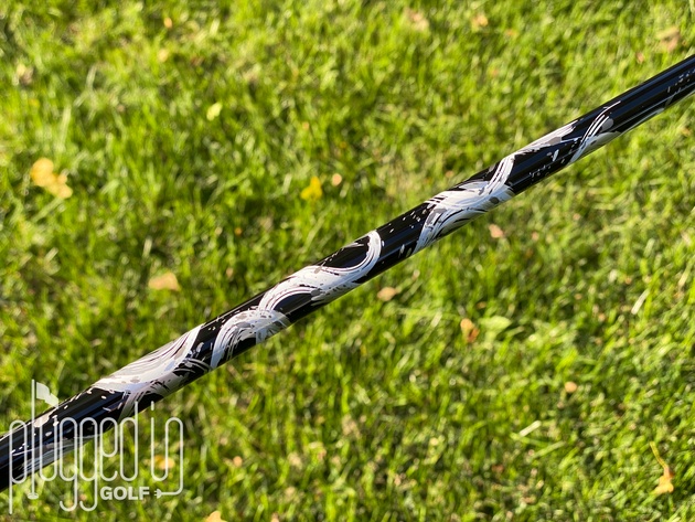 The Kai’li White has a bolder look than most Mitsubishi shafts. On a gloss black background are swirling white and silver graphics meant to reflect the ocean theme. The Kai’li name blends in with the graphics, and the Mitsubishi branding is located just below that and is quite small. As with most modern shafts, everything from the midpoint down is completely clean save for the small MR-70 icon.