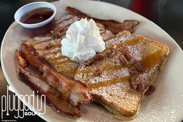Depending on the package you select with the Stay and Play deal, breakfasts, and dinners can be included at Spirit Hollow. Lambo’s is the bar and restaurant that’s present on-site. Every morning during the Fly, Stay, and Play experience you’ll have your choice of a bevy of breakfast items including omelets, french toast, and breakfast platters. After as many rounds of golf as you can fit in, you’ll have your choice of several different dinner options: pasta, ribs, filet mignon, ribeye, shrimp, or salmon. Those items are limited to the people who utilize this deal and stay on the property.