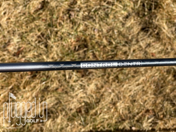 On the “logo up” side, there is a series of bars indicating the shaft’s stiffness in the butt, mid, and tip sections.  This is the other way to tell the EC1 Gray from the EC1 Blue.  Finally, at the tip, the silver finish fades away, revealing an “inside” look at the graphite beneath a “CONTROL CENTR” graphic.