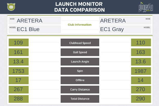 Comparing these two shafts, the EC1 Gray is 7% stiffer in the tip than the EC1 Blue, per ARETERA.  I found that 7% to be quite noticeable, but the two shafts are still much more similar than they are different.  It’s like comparing dark and milk chocolate, not chocolate against vanilla.