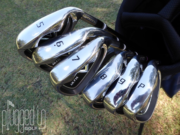 The AR-F35’s had a crisp feel at contact with both Surlyn and urethane covered golf balls. Equally satisfying was the moderate ‘snap’ sound that was consistent across the face. Determining strike location took some concentration which isn’t startling for irons designed for forgiveness. Golfers looking for feedback should check out the Argolf AR-F15 irons [full review HERE].