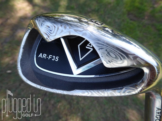 While many products in the Argolf family achieve eye appeal by way of precision milling, the cast AR-F35 irons rely more on balanced lines and interesting curves. In the bag, the arch framing the cavity drew me in for a closer look, which led to the discovery that it’s formed by a deep undercut. The thick silver point of the badging creates an interesting juxtaposition.