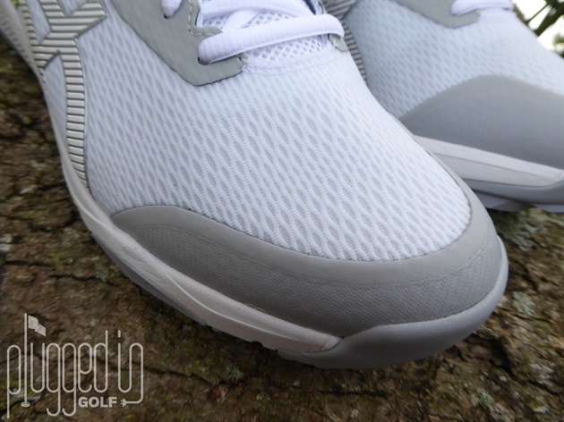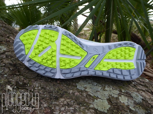 Compared to an ASICS running shoe, the GEL-Course ACE had less flex while walking but was nothing close to stiff thanks to strategically located flex grooves.  During the golf swing, those became beneficial elements working in harmony with rotational forces.  Lateral stability was also good.  I’d categorize the ACE as a mobility shoe with enough stability to satisfy most golfers’ needs.