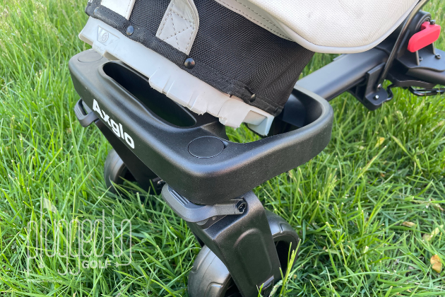 I have tested and used push carts with bag attachments that truly only fit their cart bags. The Axglo has a unique system that allows for almost any size or shape bag to fit like it was custom made for it. The custom fit came in handy in preventing dangling clubs from bouncing up against the handle area, especially over hilly terrain.