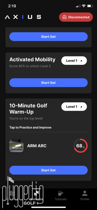 Much like Peloton, AXIUS Core has a hardware component and a training component. On the training side, you’ll start by downloading the AXIUS app to your iOS device and scheduling your assessment. The assessment is a one hour, one-on-one session with a TPI Level 3 Certified coach conducted over Zoom. You’ll go through a series of movements and answer some questions so that your coach can personalize your workout program. The assessment alone was extremely beneficial as it identified two areas of weakness and two areas lacking mobility, all of which contribute to problems in my golf swing.