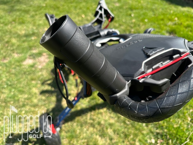 Next, the Bag Boy Nitron has the best umbrella holder I’ve encountered. The included umbrella holder can attach to the right or left side of your cart, which is a nice option. What makes it stand out is how stable the holder is.