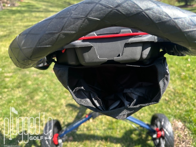 Finally, there’s a large storage pouch underneath the handle. You can use this for your larger items or the things that you aren’t grabbing as frequently during the round. This mix of storage options allows you to set up your cart in multiple ways.