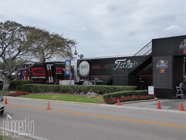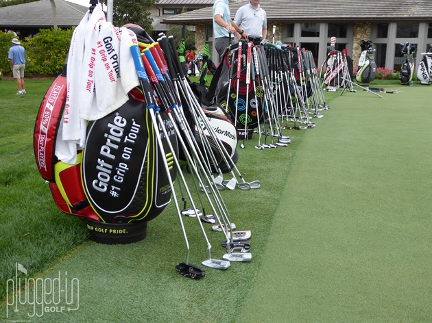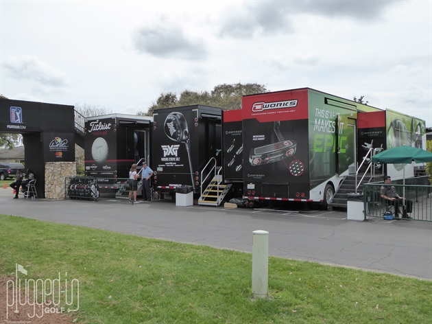 While most folks are home watching an exciting Sunday finish on TV, a steady stream of equipment trucks are arriving at the event that starts the next day. All the big name companies – Cobra, Taylormade, Wilson Staff, etc. – have trailers fully stocked with components and club building equipment to support their players.