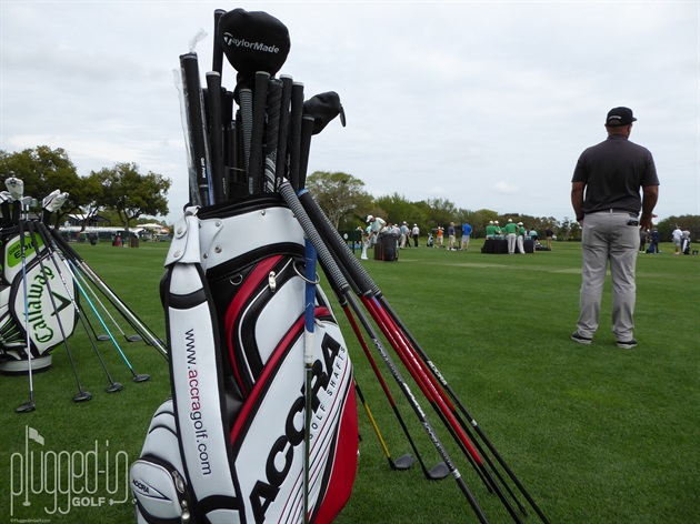 Standing back on the range is a line of equipment with reps ready to jump. Rory wants to try a Callaway GBB Epic wood with an ACCRA TourZ RPG shaft? No problem. After joining the huddle around Rory, off go the Callaway and ACCRA reps to work together in the trailers.