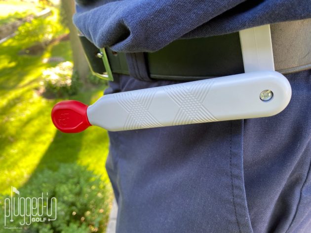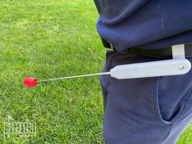 The Best-Putt is ready to use right out of the box.  Simply clip it to your belt, set the angle, extend the arm and you’re ready to go.  Do note that you could clip this to your pocket, but it stays in place better when clipped to a belt.