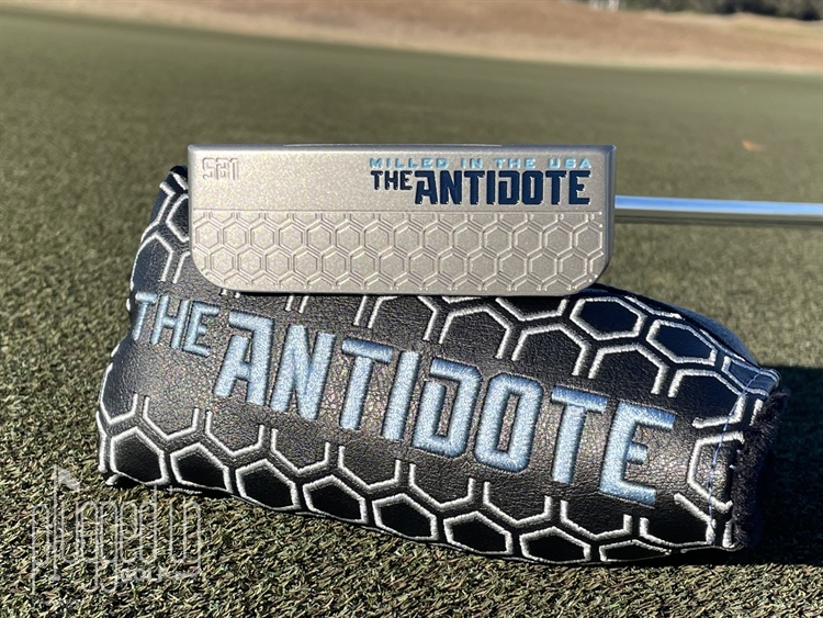 Bettinardi also did a masterful job at harmonizing the overall look of the Antidote SB1. The aforementioned honeycomb pattern is prevalent on the well-executed headcover – with magnet closure (thanks Bettinardi). I love the sapphire blue color used in the cavity insert and paint fill, and the grip itself.