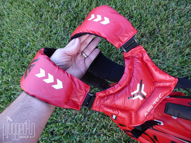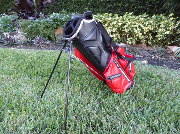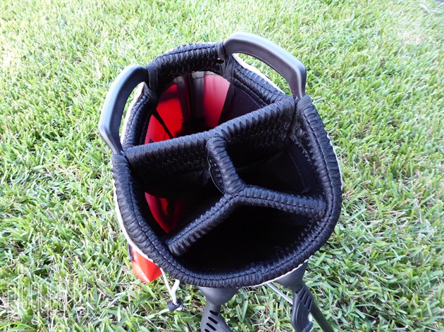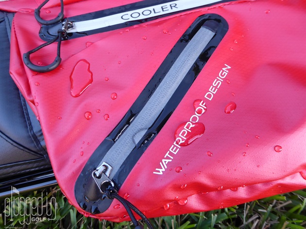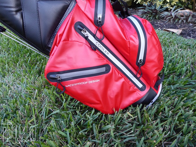 Another noteworthy feature is the two handles molded in the top that provide great leverage loading and unloading the bag from the trunk. Those who enjoy a few beverages on the course may be interested in knowing I was able to get five cans in the lined “Cooler” pocket and that drain holes provide relief for melting ice.