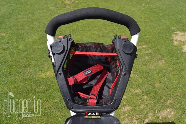 The Quattro also features a scorecard holder, umbrella holder, and a drink holder, so your water or Gatorade doesn’t need to take up storage space in the compartment. Big Max also provides a variety of additional accessories to add to the Quattro here.