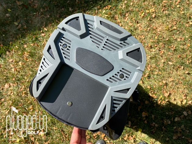 The next feature to highlight is the Hybrid Stand System. BIG MAX has engineered a solid base so there’s nothing to break and no hassle with fitting this on a push cart or motorized cart. There’s also a strap to lock the legs in when it’s on a cart. When they are in use, the legs snap in and out easily and feel very sturdy.