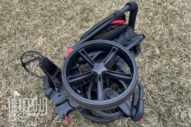 The biggest step in getting this course ready was attaching the front wheel. It can be folded inside the cart or removed between rounds. This is one of the most compact push carts I have ever used, and I thoroughly enjoyed having it fit so easily in the trunk of my sedan.
