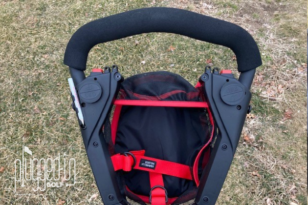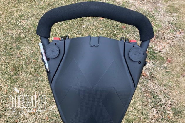That said, the middle console is large enough for almost anything. It’s unique as it can be used as a catch all basket or organized with divider pockets. The console lid uses heavy duty magnets to close shut and has a small clip both inside and outside for holding a scorecard. Adjacent to that are slots for pencils and tees and holes for Big Max IQ 360 attachments. There is certainly enough storage to get started, but I am already on my way to ordering more attachments.