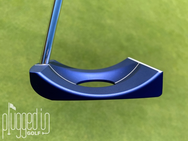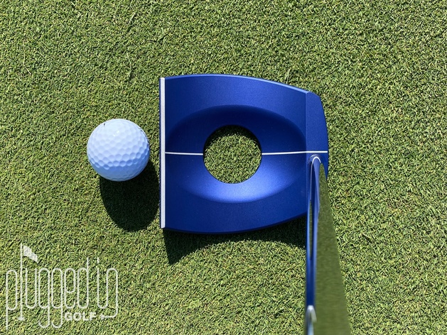 There’s also the small issue of the shaft being attached to the back of the head. That’s going to earn some sideways looks on the putting green. Finally, I’ll note the hole in the middle of the head which is surrounded by a larger indentation.