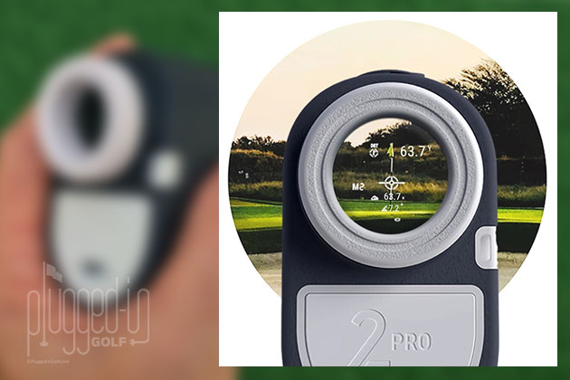 There are three modes in the Series 2 Pro. Mode 1 is Continuous Scan Mode. In this mode you hold down the Acquire button and distances appear as you scan across your target line. Mode 2 is the Golf Mode. Press once and hold to activate scan and lock onto target. When the target is acquired, the unit will vibrate. Yardage is displayed at top of view field. Slope yardage is displayed at the bottom of the view field. Mode 3 is Speed Mode. There is no description of what this mode does or how to use it. I reached out to customer support and was told, “Mode 3 is speed mode which is mostly used for hunting but you can also track the speed of your ball.” I’m still unclear what this does or how to use it.