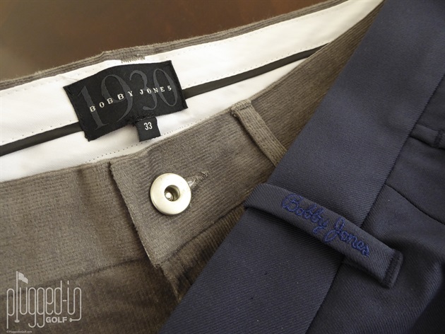 I was excited to see that Bobby Jones offers pants in odd waist sizes, as I’m typically a size 33 that has to go to 34 in even-only sizes. The Flat-Front Tech Pants in Summer Navy fit nicely around the waist. The cut is what I consider regular, with room in the seat and thighs. I like the tour split on the bottom, but offered only in a 33 ¼” inseam, the legs were too long for my 32” inseam. The Stretch Cord Trousers were snug in the waist and there was no stretch in the waistband. That seemed odd, since the rest of the pant had great stretch which was perfect for the more athletic cut and golf actions. After washing, the waist was beyond snug, although the 33 ¼” standard inseam is now a good length. I’d recommend going up a size and enjoying, as these are the most luxurious cords I’ve ever felt.