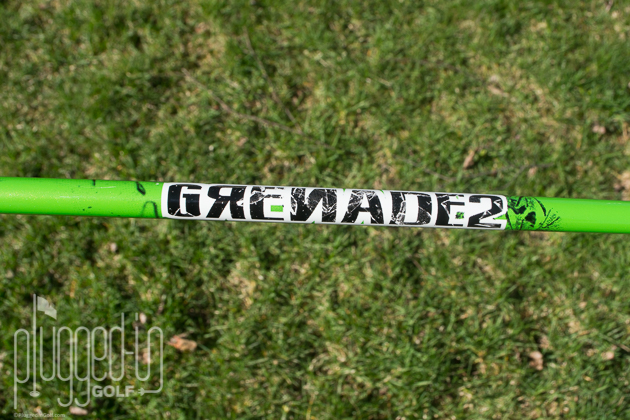 Bombtech carries the green and black color scheme from top to bottom, most notably in the vibrant green shaft. Flip the driver over and you’ll see the signature dual cavities painted in green and “Bombtech” and “Grenade 2” in bold lettering.