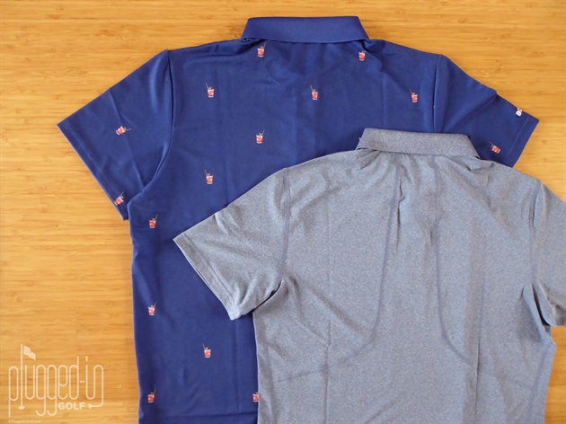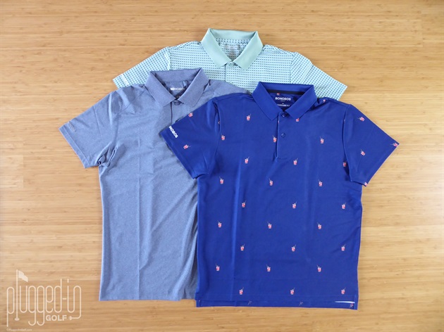 Both the Performance Golf Polo and M-Flex Golf Polo come in slim and standard fits. In my typical medium size, the M-Flex in the slim fit was form following without being tight or restrictive with the sleeves coming to mid bicep. The Green Palm Parade Performance Golf Polo was more of an athletic cut in the slim fit. In standard fit, the Navy Spritz Performance Golf Polo had room through the torso. The sleeves of both Performance Golf Polos also came to mid bicep, but the loose fit created a bit of a disconnect with the look.