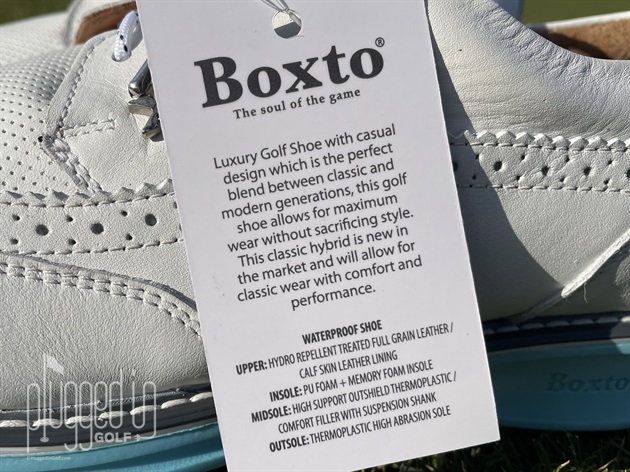 Boxto utilizes a calf skin lining to elevate the comfort and provide what I’d call a premium feel. Underfoot, the Boxto Legacy Hybrid Love have a double layer of memory foam which I found more supportive than pillowy. My only negative on the comfort scale was the weight of the shoe, which is on the heavier side. For comparison on a single size 9.5 shoe, the Boxto weighed 19.2 oz., where the new G/FORE Gallivan2R [full review HERE] are 14.7 oz., and Adidas Tour 360 ’24 [full review soon] are 16.5 oz. Depending on where you play and fitness level, those ounces can add to fatigue at the end of a long day.