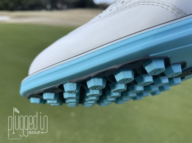 Traction wise, the deep waffle pattern lugs proved good on all the surfaces I encountered – short fairway grass, long rough, and various sand compactions. I haven’t had the shoes long enough to evaluate wear myself, but the Legacy Hybrids do feature high abrasion thermoplastics.