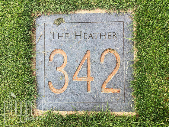 Much of the variety at The Heather comes from the greens. Though they are all roughly the same size, the shapes and slopes present a wide variety of challenges. Some greens are reasonably flat, others – like the one above – have a strong, planar tilt (toward a water hazard). If you have the vision or experience to know them, you should be taking the slopes into consideration on your approach.
