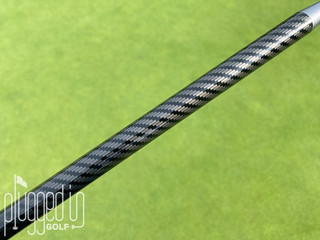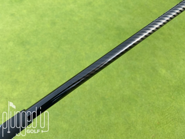 The upper section of the shaft transitions from black at the grip to a carbon fiber weave as you get toward the connector. Putting the busier element nearer the ball is the opposite of what we see from most shaft designs, and it can be slightly distracting at address. The Stability Carbon shaft has much simpler graphics than other Stability shafts, which I think look great.
