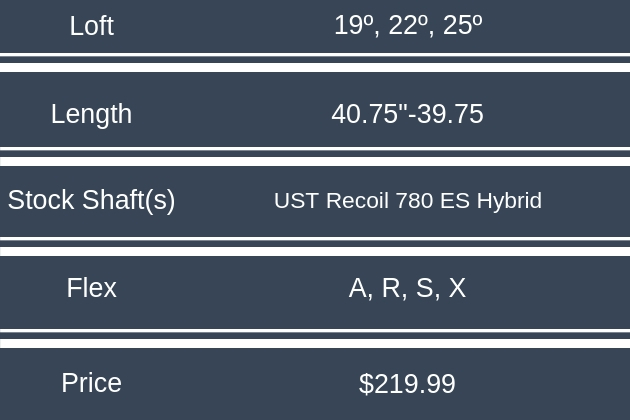 Whether it’s part of a total bag remodeling or just an upgrade to your long game, the Bridgestone Tour B JGR hybrid is a solid choice. Hybrids don’t get much easier to hit, so it’s a great option for the mid-to-high handicapper, or the skilled player smart enough to value forgiveness.