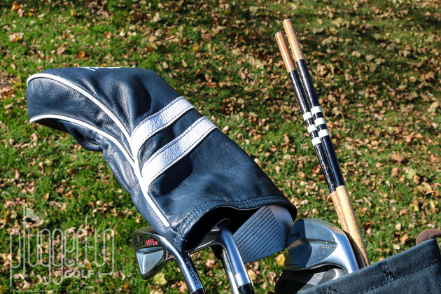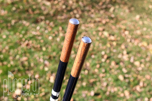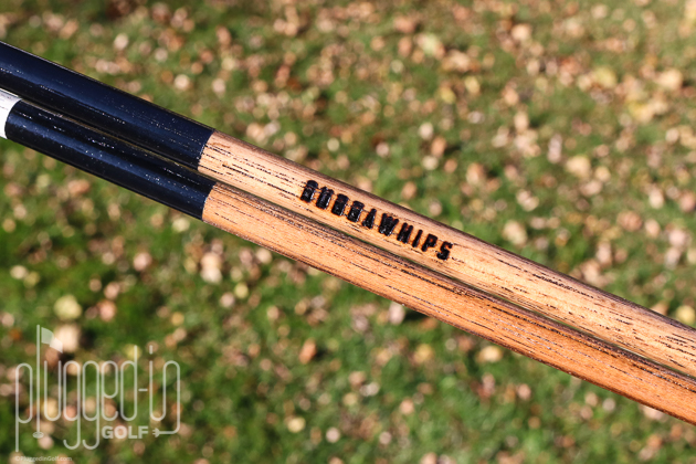 The ends of each BubbaWhip are covered in a rounded bit of metal.  This makes them a bit harder to stick into the ground, but the advantage is that they won’t scratch your clubs.  As someone who had a driver and putter defaced by pointy plastic (in the same round!), this is a trade I’ll happily make.