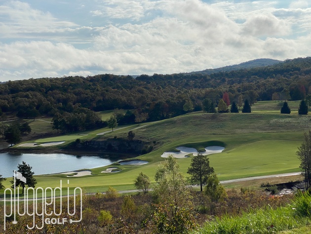 Buffalo Ridge sits between Payne’s Valley and Ozarks National in many ways, and one of them is aesthetically. It’s not as manicured and manufactured as Tiger’s course nor as rugged as Coore & Crenshaw’s. That “happy medium” – rich with natural water features and 300 million year old limestone – makes Buffalo Ridge arguably the prettiest course on the property.