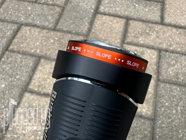 Turning the slope adjustment on and off is done with a slider near the front of the unit. There’s a clear orange “Slope” that’s exposed when the slope adjustment is on. A small locking mechanism makes sure that it stays in the intended position. Turning off the slope adjustment will also turn off the Elements function, making sure you’re tournament legal.
